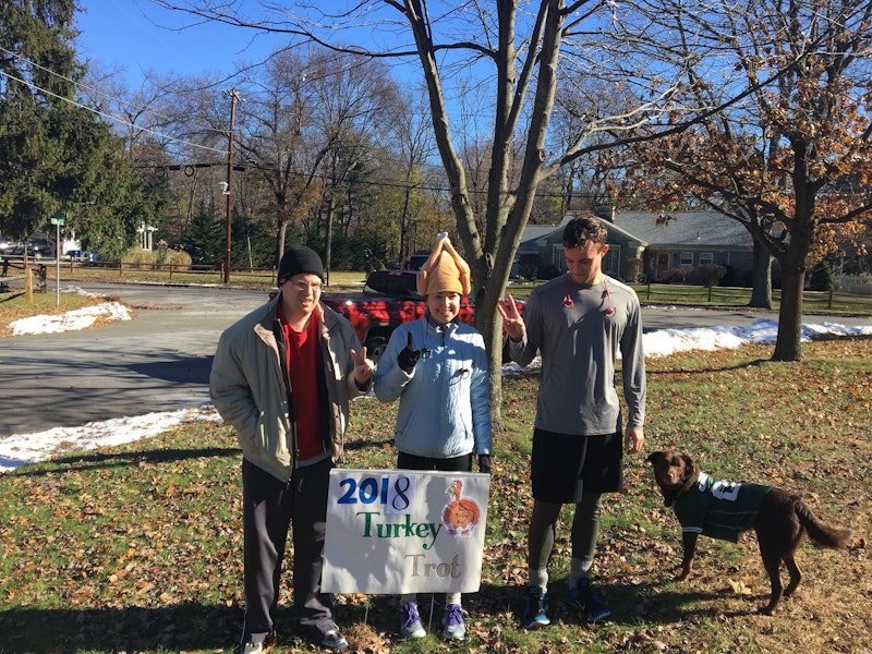 Holidays can be challenging for those who have lost loved ones, and we can miss them a little extra on these special days. In 2016, Bridget Mellon ’20 lost her uncle Joe to pancreatic cancer. Now, in honor of her uncle, on Thanksgiving morning, she and her family host and participate in a neighborhood Turkey Trot to raise money for pancreatic cancer research (hence the purple garb). It’s a true grassroots effort shared by family, friends and neighbors in Morris Plains, New Jersey. Bridget says, “Donations are made to run in the race, and the winner gets to wear the very fashionable turkey hat.”