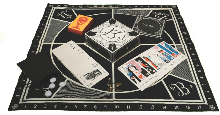 Illimat: a card game that was originally designed as a prop for a photoshoot with The Decemberists that later became a real game. It’s perfect for small spaces and people with shorter attention spans (the whole game can be completed in under an hour). Theoretical risks include: getting frostbit and something called Harmonic Convergence.