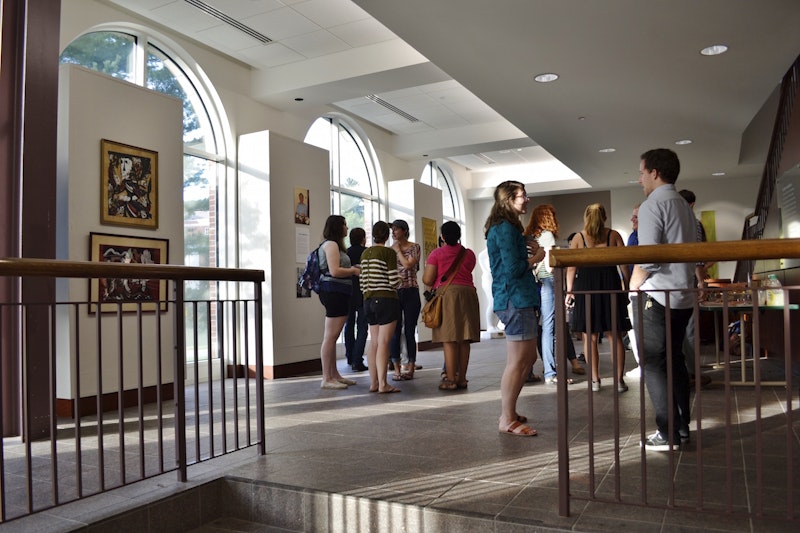 The crowd was soon a mix of burgeoning, young art students and experienced patrons. As people trickled into the foyer of the Barrington Center for the Arts last Tuesday night, they mingled and meandered through the display of warm toned prints. The lively figures of Beauty Given by Grace, by Sadao Watanabe, welcomed observers to see classic biblical narratives in a new way. After a short reception, Bruce Herman, Lothlórien Distinguished Chair of Visual Arts and gallery director, ushered the crowd into the theater and introduced the evening’s speaker, Sandra Bowden.