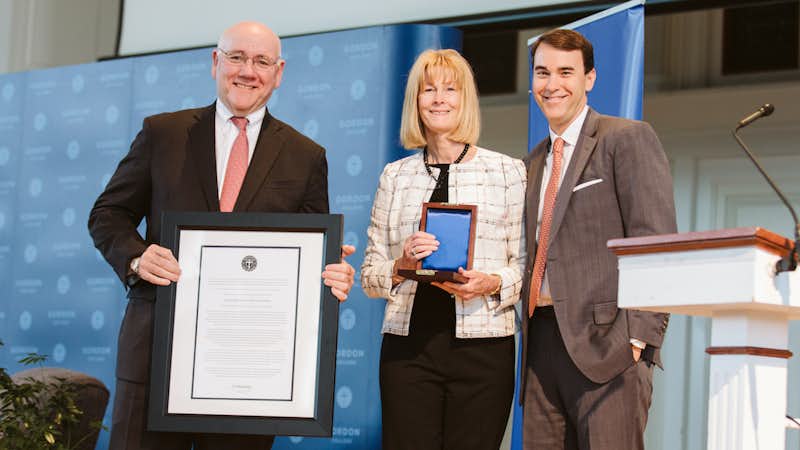 During Convocation on Friday morning, the Founder’s Medal was presented to Brad and Pam Warner (pictured above), longtime friends of the College. The award is given each year in recognition of an individual or individuals who have selflessly supported the mission of Gordon College. Convocation also included a “Conversation with the President” with Eric Ha, chief people officer and general counsel for International Justice Ministries.