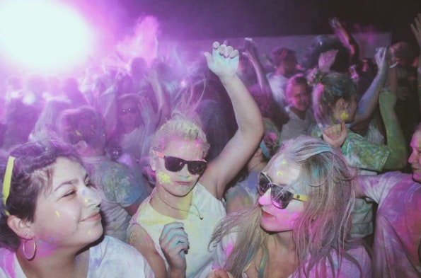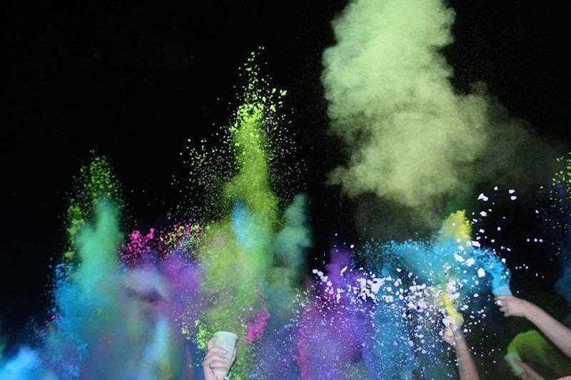 A cloud of multi-colored powder exploded into the air. No one could see or breathe. It was glorious. The dancing started raucously and didn't stop until the sounds of the last song died out. Michael Lacson ’17 started a conga line and people were on their friends’ shoulders all in what can be described as a celebration of color and life.
