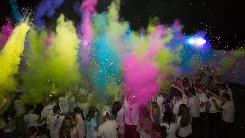Students pushed and clumped together on the tennis-court-turned-dance-floor as everyone held cups full of yellow, blue, purple, pink, and green colors in their hands shaking with adrenaline. Some people, unable to contain themselves, threw small amounts of powder at their friends.