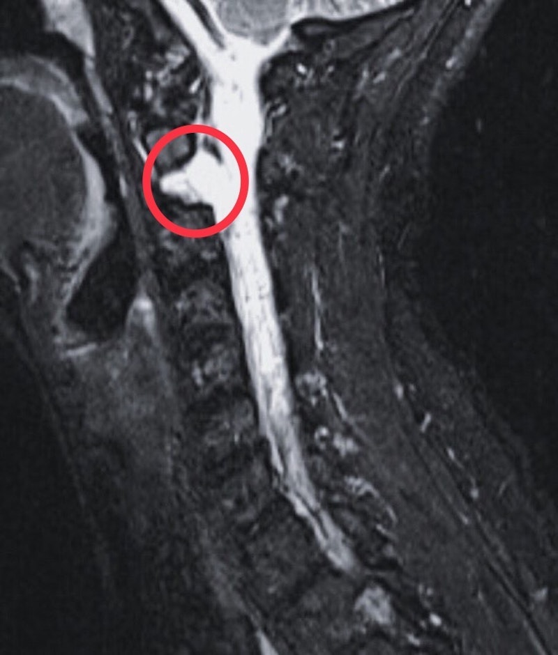 Her MRI revealed a cyst on a vertebra, though neurosurgeons could not prove it was the source. But without any other plausible answers, the cyst became the leading theory—though surgeons would not remove it due to its risky location beside the vertebra-basiliar artery and brain stem.