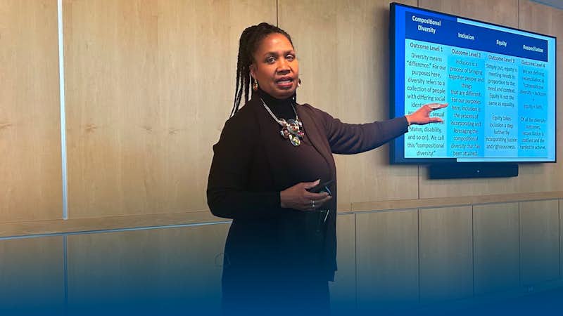 - Inclusion: bringing together different people and leveraging compositional diversity to ensure all feel welcomed or listened to. "If you're going to do the hard work to bring people in, and if you're not going to leverage the diversity that's there, don't bother bringing people in,” says Loyd-Paige. “Don't say you want my voice and then never ask me anything.”
