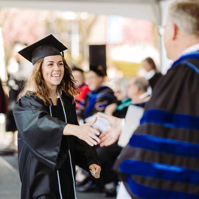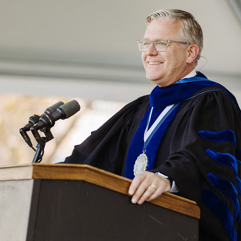 During the ceremony President Michael Hammond addressed the graduates and guests. “You are a class that has endured much during your college years,” he said. “This has been the most difficult period for higher education in the U.S. since the Civil War. You have persisted through a global pandemic and a time of war and anxiety in our world . . . You have demonstrated character over your college years. And by the power of Holy Spirit, that character can point to the hope of Jesus Christ for the world as you leave this place and thrive in the days and years ahead.”