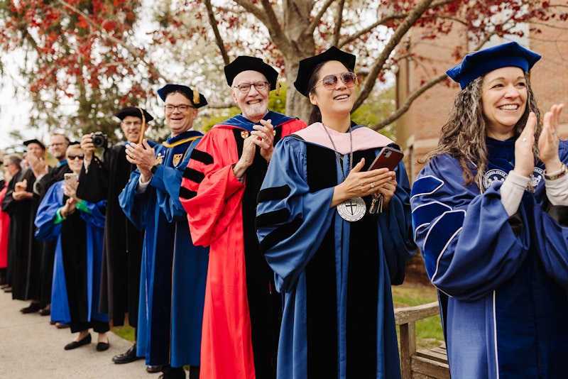During the Baccalaureate ceremony the evening prior, May 10, graduating students Kyla Lange ’24 and Aaron Wright ’24 offered reflections, and guests heard remarks from honorary doctorate recipient Chen.