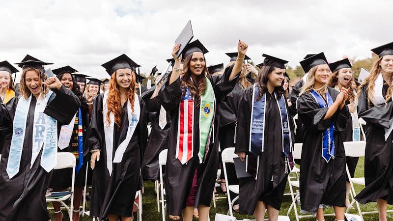 On Saturday, May 11, 2024, Gordon College honored the Class of 2024 during its 132nd Commencement ceremony on the quad. Bachelor’s degrees were conferred on 292 undergraduate students, 136 of whom graduated with honors, and 119 advanced degrees were given to graduate students, including the inaugural graduate cohort for the Master of Public Health. For many graduating seniors this ceremony held particular importance, as the onset of the global pandemic four years ago cancelled or altered their high school graduation ceremonies.