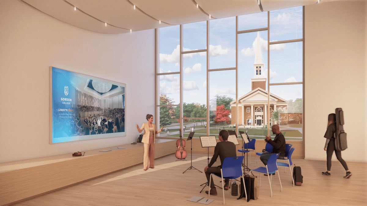 Scheduled to break ground in summer 2026 and open in fall 2028, the Adams Center will bring all of Gordon’s music programs, including choral and instrumental ensembles, under one roof for the first time in the College’s history.