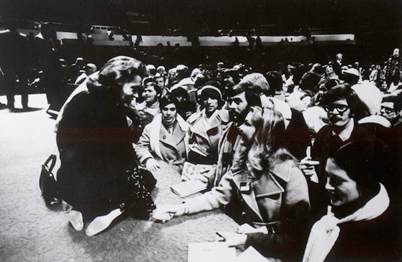 Photo: Elisabeth Elliot with students at the Student Missionary Convention in Urbana, Illinois, in 1976 (Billy Graham Center archives, Wheaton College, Illinois).