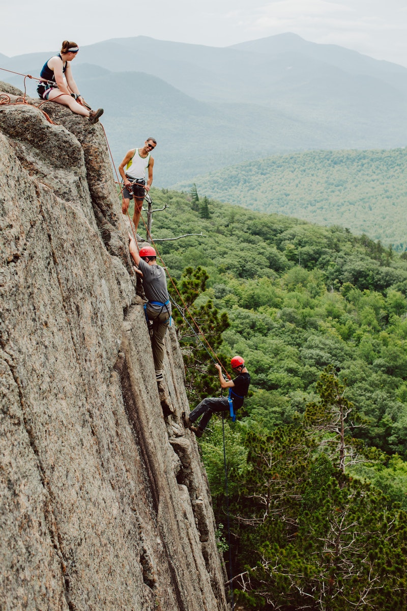 “We had the full La Vida experience,” including solos, says Ventura. She crawled up the 2,876-foot Mount Jo on hands and knees; Obenschain scaled the rock climb at Owl’s Head with one of the participants strapped to his back.