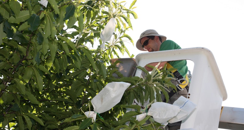 Legend has it that a squirrel could travel from Georgia to Maine on nothing but the branches of American chestnut trees without ever touching the ground. But in the late 1800s, a fungus, brought to the U.S. from Asia, infected a chestnut tree near the Port of New York and set off an epidemic that would kill more than three billion American chestnut trees in just 50 years. Today, most surviving American chestnut trees are merely sprouts that have grown from the stumps of diseased trees. But Andrew Newhouse ’02 and a team at the College of Environmental Science and Forestry (ESF) at the State University of New York (SUNY) are working to restore these “sprouts” to their former glory using genetic engineering. Within the next few years (assuming the EPA, FDA and USDA give their final stamp of approval), ESF will likely be able to distribute the reengineered trees to conservationists and civilians. And within the century, people may again behold these 100-foot-tall, five-foot-wide giants and taste the sweet, fabled American chestnut. [caption id="attachment_6320" align="alignleft" width="1600"]